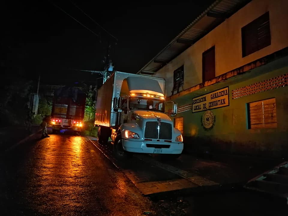 Un cargamento de ayuda humanitaria proporcionado por Protección Civil Estatal, fue trasladada en camiones del C.P. Joaquín Juárez, para la población afectada por las inundaciones.